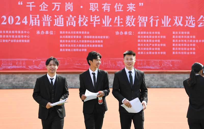 2023年10月20日,成渝地區2024屆普通高校畢業(yè)生數智行業(yè)雙選會(huì )在位于重慶永川區的重慶智能工程職業(yè)學(xué)院舉行。這是學(xué)生在雙選會(huì )上。新華社記者 王全超 攝